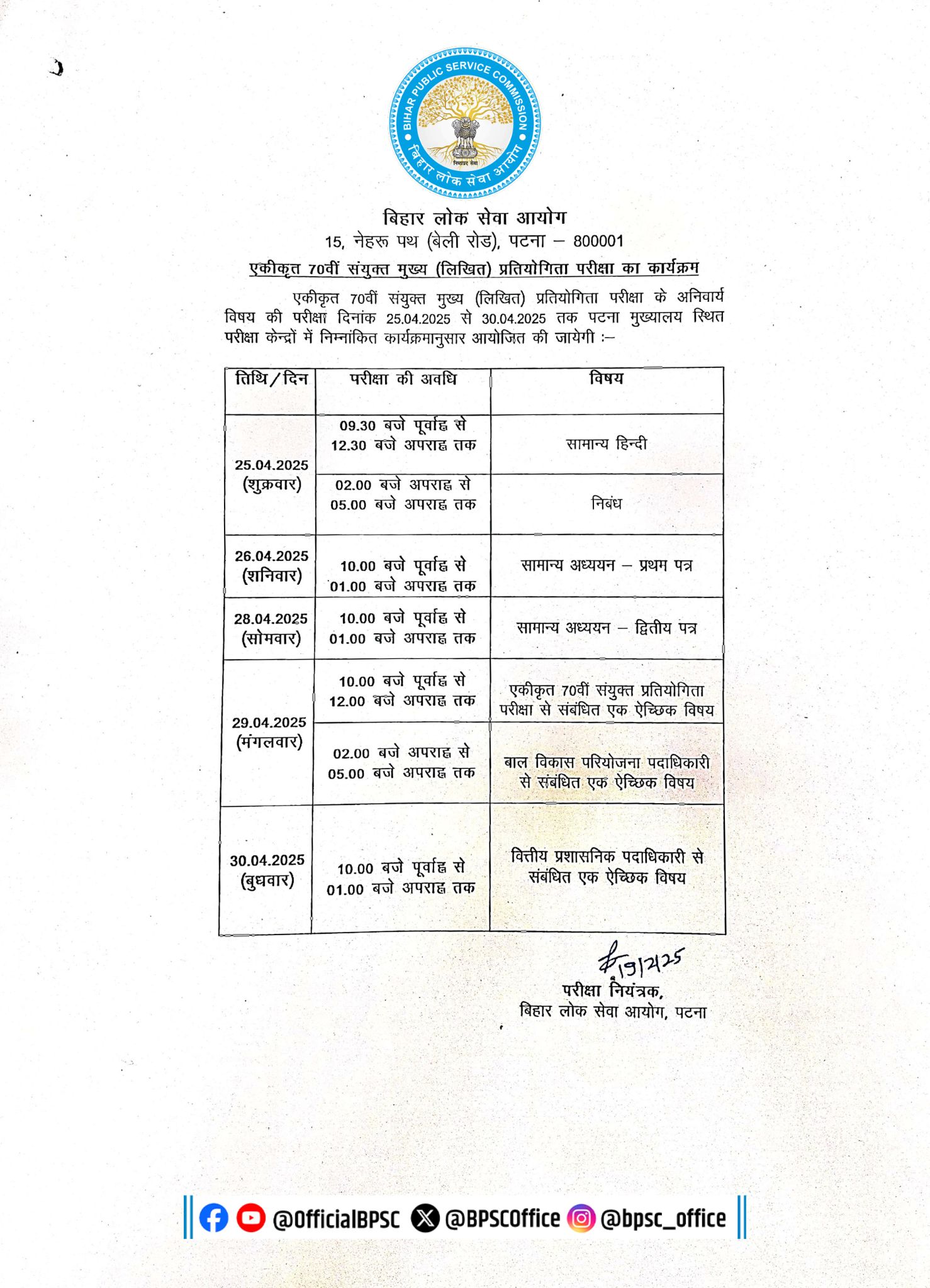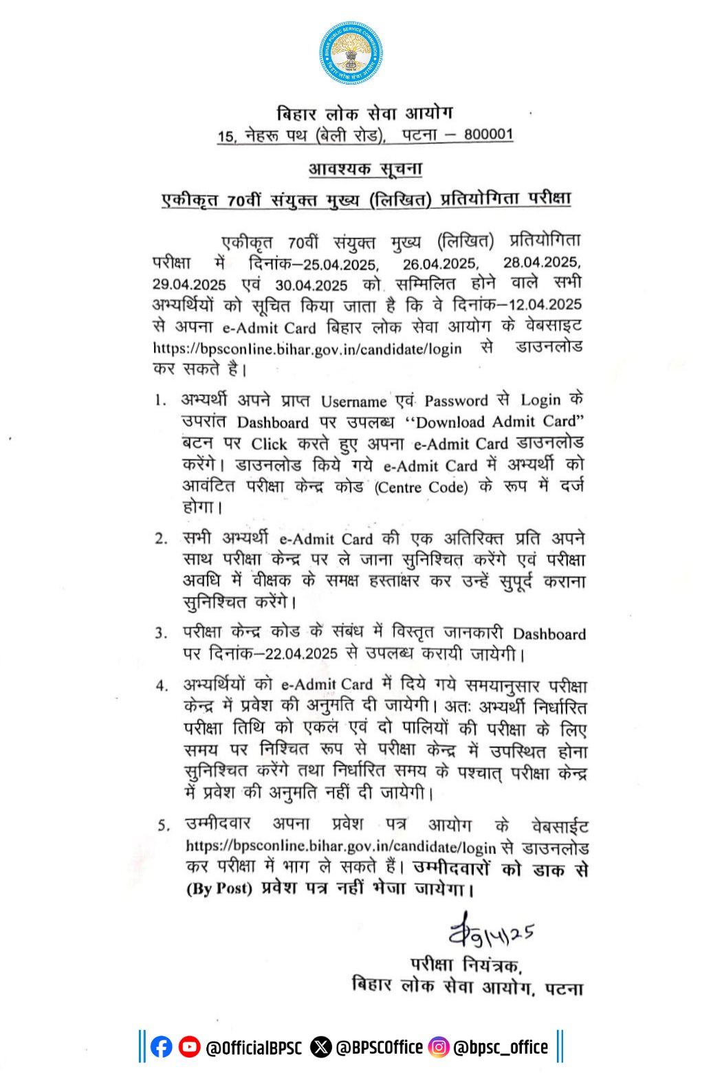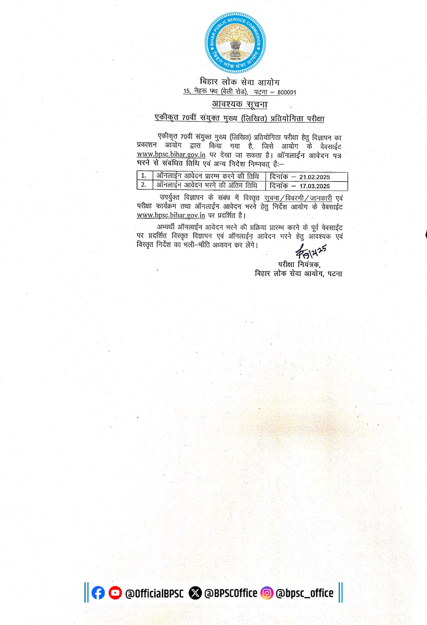 📎 Important Links - Bihar Public Service Commission (BPSC) 70th Combined Competitive Examination 2024